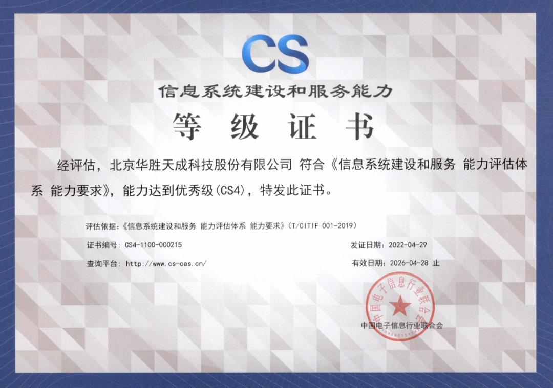 作为经济社会发展的数字化领导者,英国上市公司365此次顺利获得CS4(优秀级)认证资质,标志着公司在信息系统服务行业的高标准、高质量建设和服务能力已经达到了行业现有最高等级,是对英国上市公司365在信息系统建设和服务能力的极大肯定。
