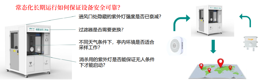 目前市场上采样亭生产厂家基本上从安全性(正压、过滤、消杀)和舒适性(冷暖空调)角度设计产品,个别配备有正压和温度监测。而保障采样亭可持续性运行及内环境全维度监测方面,少有涉及。英国上市公司365与和润科技此次推出的核酸采样亭内环境安全监测预警系统是推动运营维护低频率、高效率的有力抓手,具有先发的优势。
