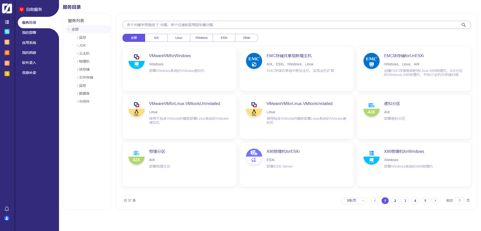 天成云服务目录:为用户提供开箱即用基于云的基础服务