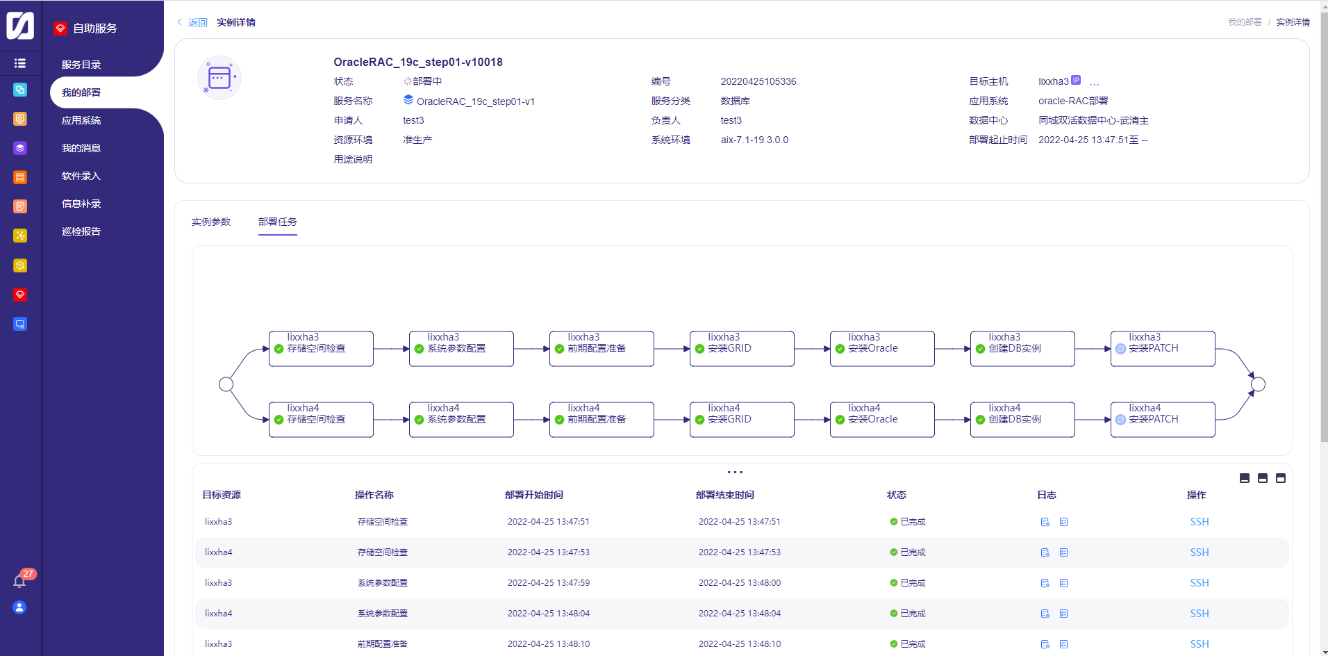 天成云自助服务页面:为客户提供可视化部署及管理流程,实现复杂应用集合的简单部署及运维