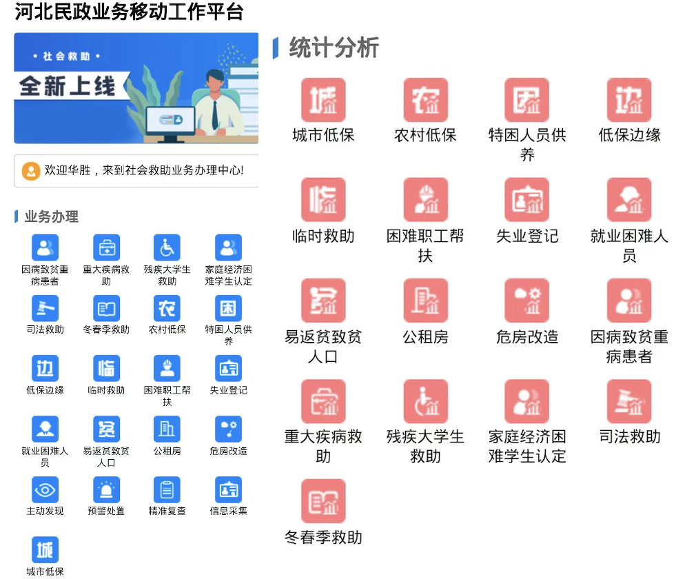 河北省社会救助民政业务移动工作平台