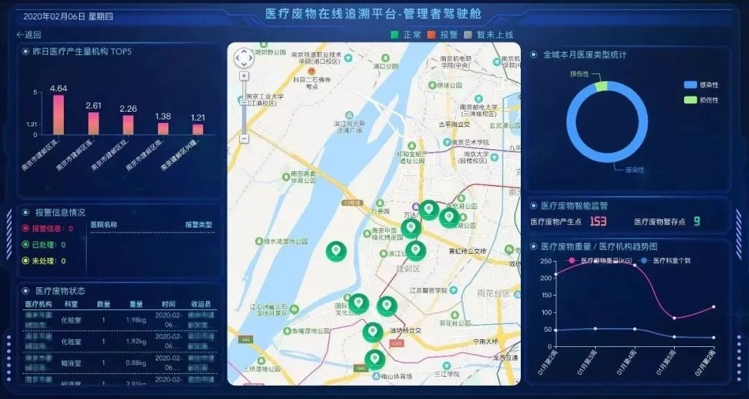 在战“疫”过程中,对废弃医疗垃圾的及时处理是抑制病毒扩散传染的关键一环。华胜天成的医废管家产品深入抗疫一线,对运转于集中隔离医学观察点的医废垃圾进行全程远程监控,确保目标医废垃圾及时清理,死守最后一道防线,严防疫情升温。