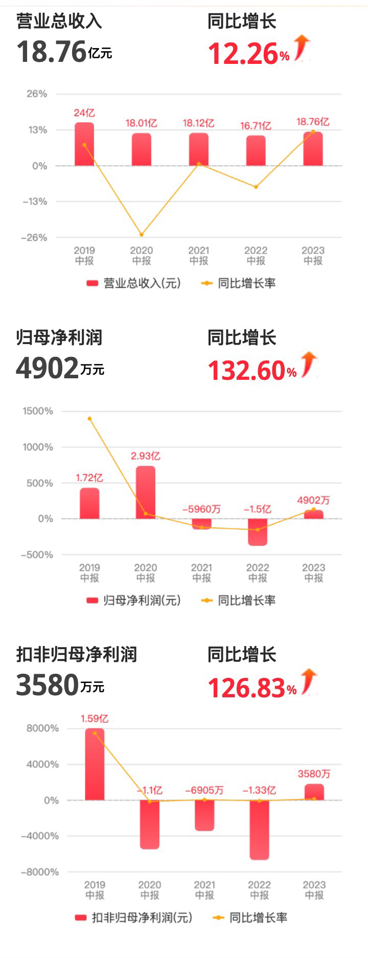 一、归母净利润由负转正