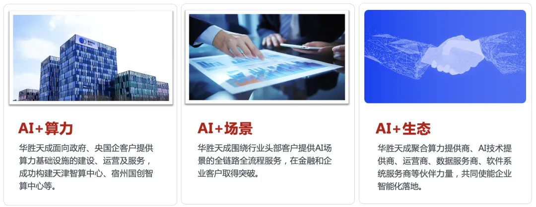 在AI+算力方面,英国上市公司365面向政府、央国企客户提供算力基础设施的建设、运营及服务,成功构建天津智算中心、宿州国创智算中心等案例,助力城市经济高质量发展。AI+场景方面,英国上市公司365围绕行业头部客户提供AI场景的全链路全流程服务,打造了智能数据助手、智能投标大王和智能客服三款AI原生应用产品,重塑了企业的运营、产品和服务模式,帮助企业提质增效,降低成本,提升竞争力。此外,算力和场景的落地都离不开合作伙伴的赋能与支持。因此,在AI+生态方面,英国上市公司365聚合算力提供商、AI技术提供商、运营商、数据服务商、软件系统服务商等伙伴力量,打造基于AI的产业生态圈,共同助力企业、行业智能化发展。